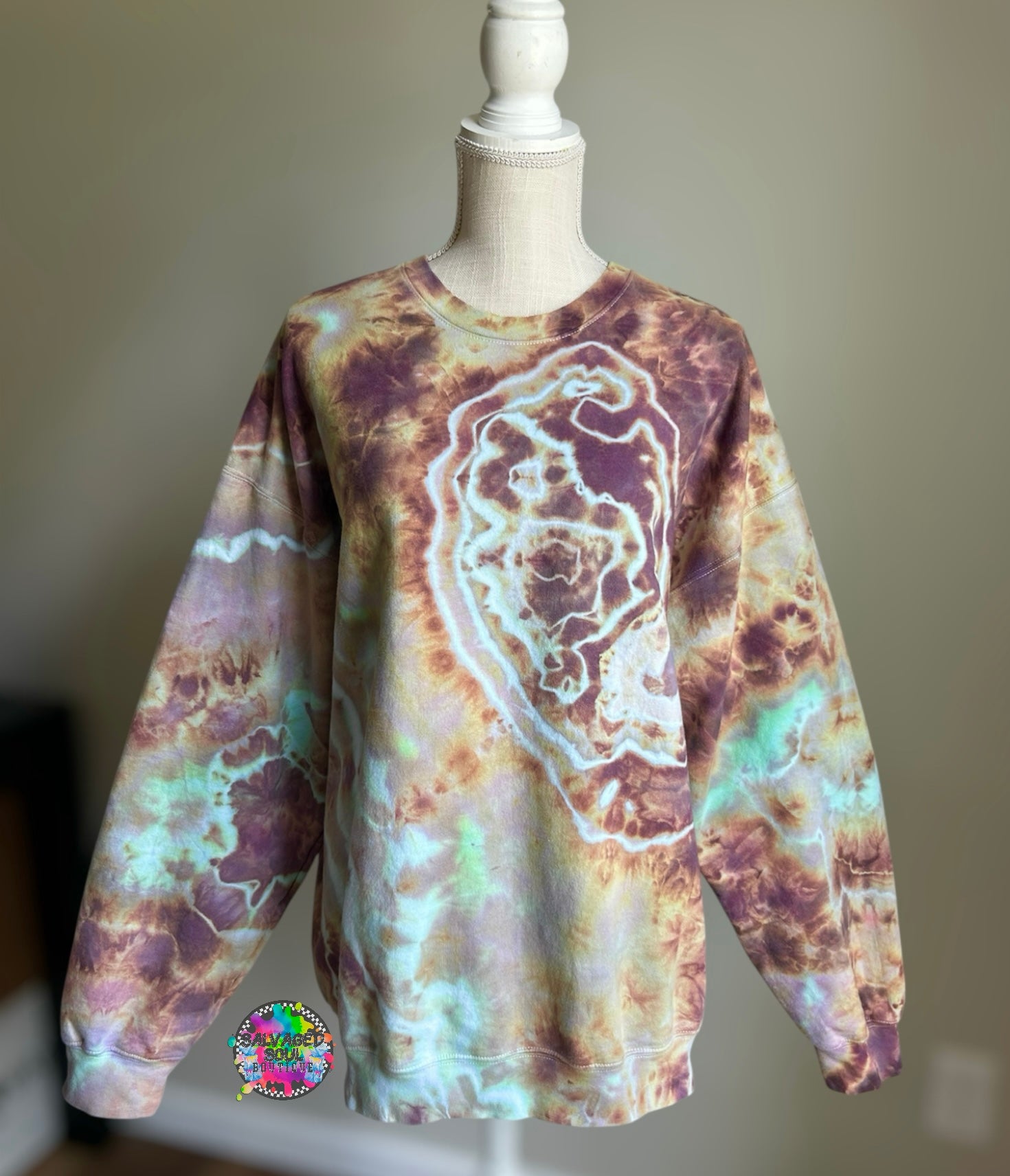 Hand Dyed with Professional dye and washed in free/clear detergent. Each item is unique and will have slight differences in the colors/patterns due to being hand dyed over ice. Other colors are possible to show due to being hand dyed as well.